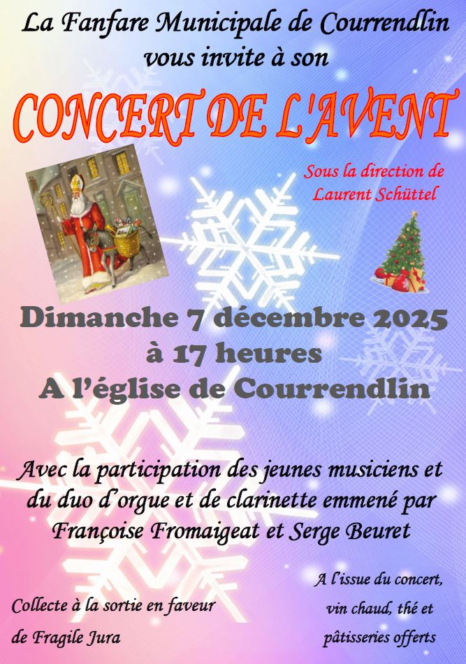 C’est avec plaisir que nous partagerons un moment musical et convivial en votre compagnie le dimanche 7 décembre à 17h à l’église de Courrendlin. Avec la participation de nos jeunes musiciens et d’un duo d’orgue et de clarinette.
